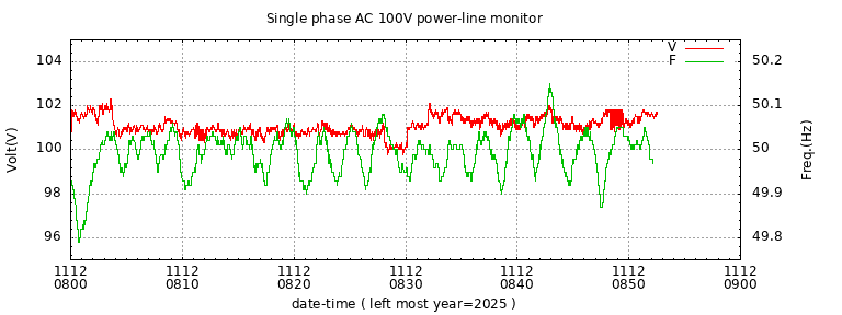 The latest one hour volt and frequency plot (1 hour span).