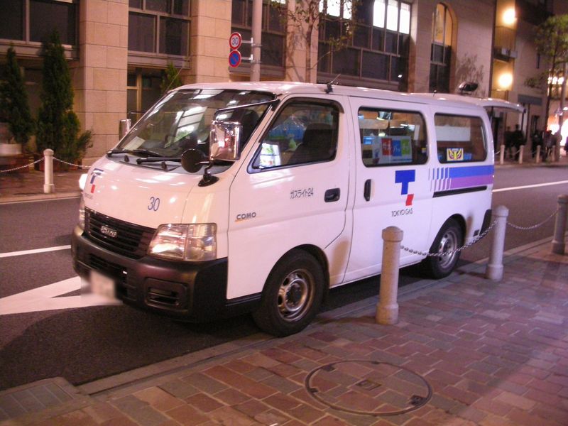 1822東新橋(潮留駅近く)ガスのにおいを嗅ぐ、ガスの緊急対応の為サービスカーが停車していた。都会はやはり健全を保っていなかった。