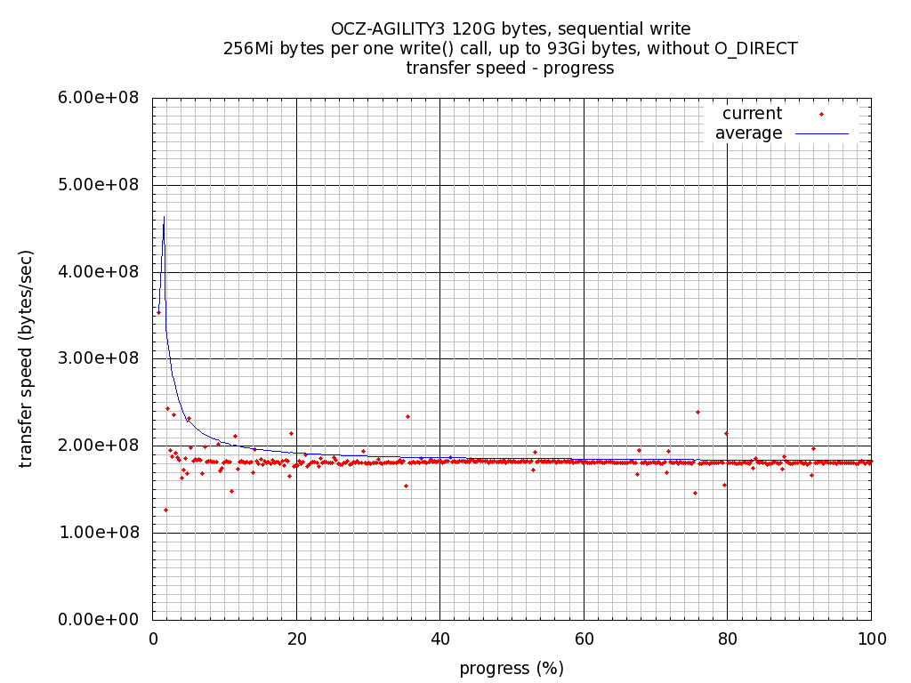 Plot: Sequential write, transfer speed - progress(percent of test file size).