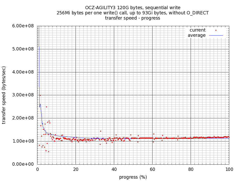 Plot: Sequential write, transfer speed - progress(percent of test file size).
