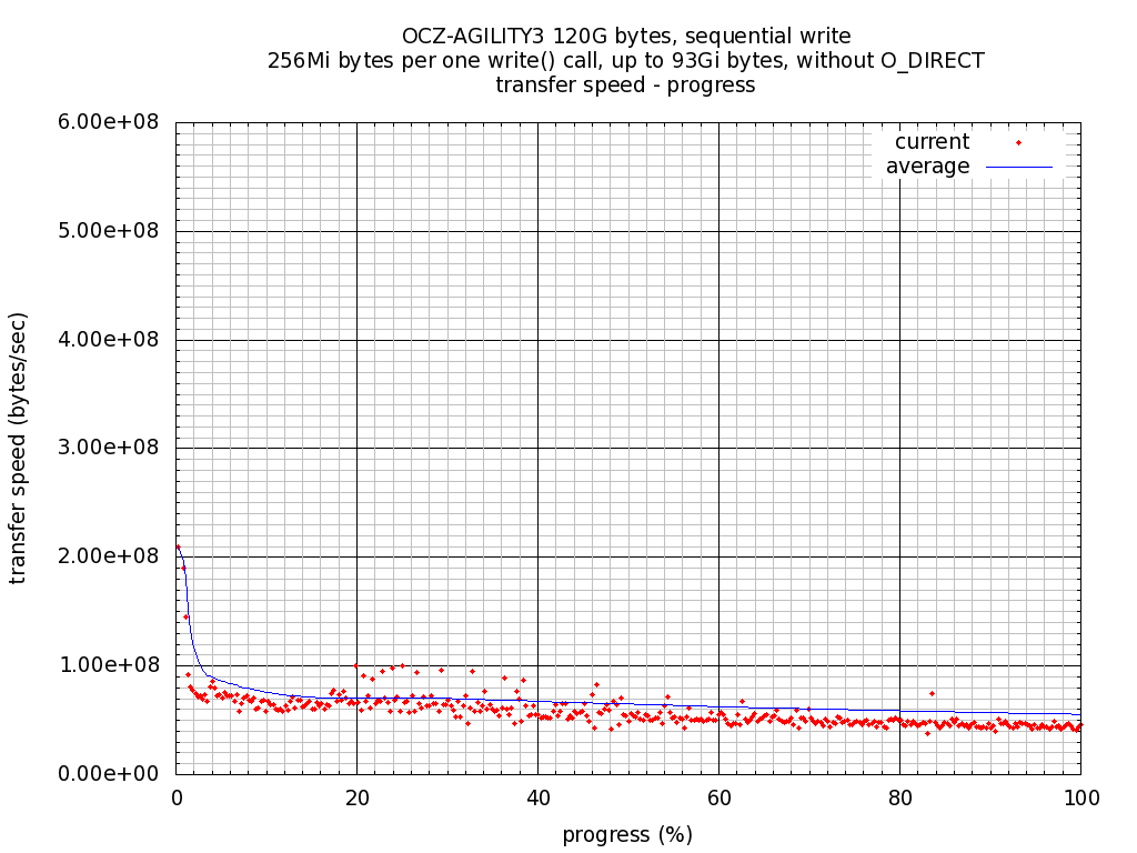 Plot: Sequential write, transfer speed - progress(percent of test file size).