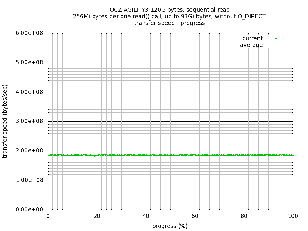 Plot: Sequential read, transfer speed - progress(percent of test file size).