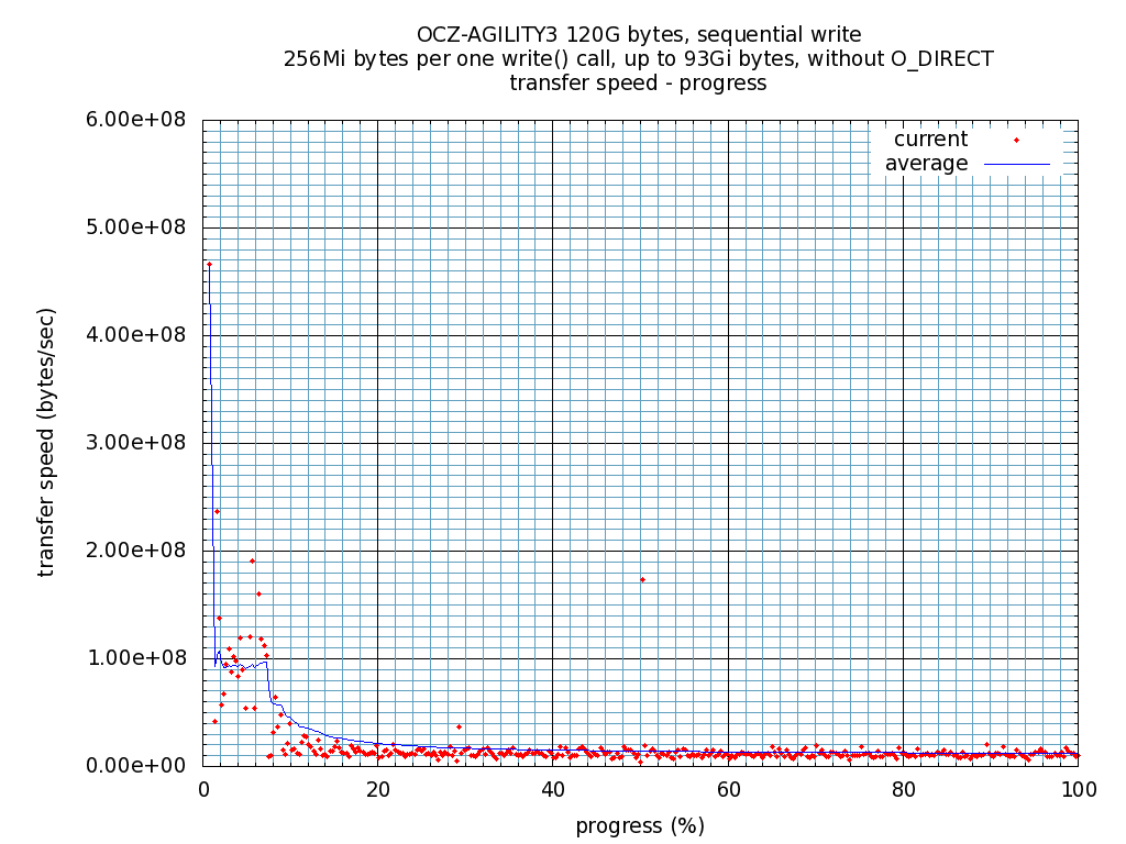 Plot: Sequential write, transfer speed - progress(percent of test file size).