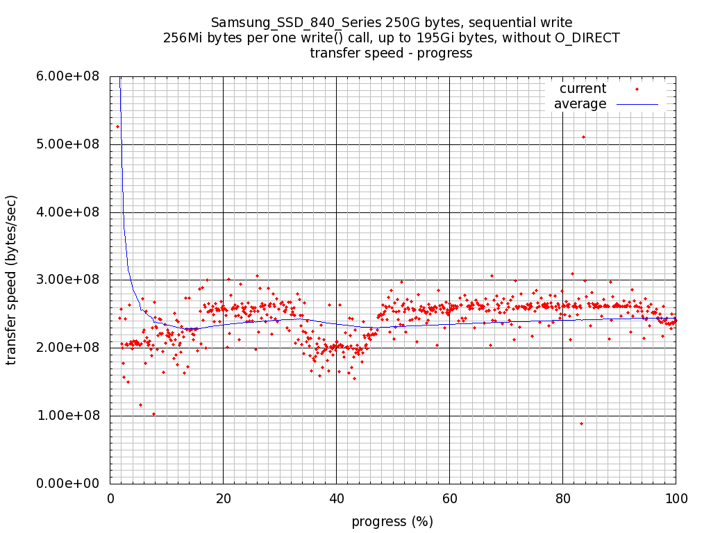 Plot: Sequential write, transfer speed - progress(percent of test file size).