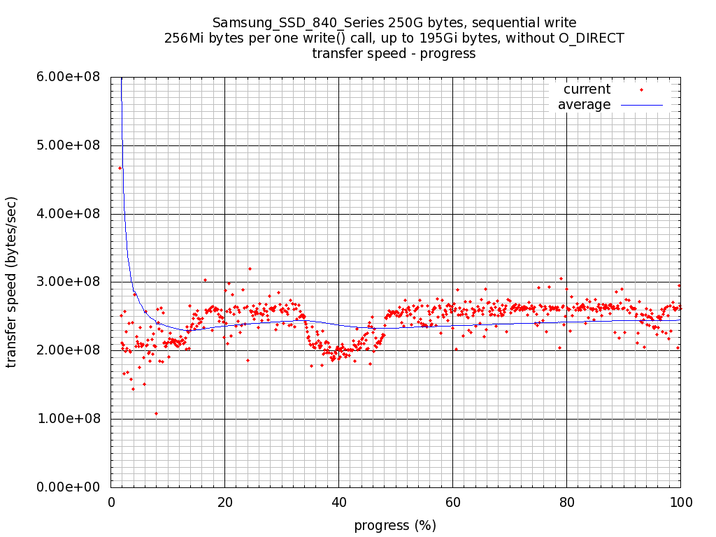 Plot: Sequential write, transfer speed - progress(percent of test file size).