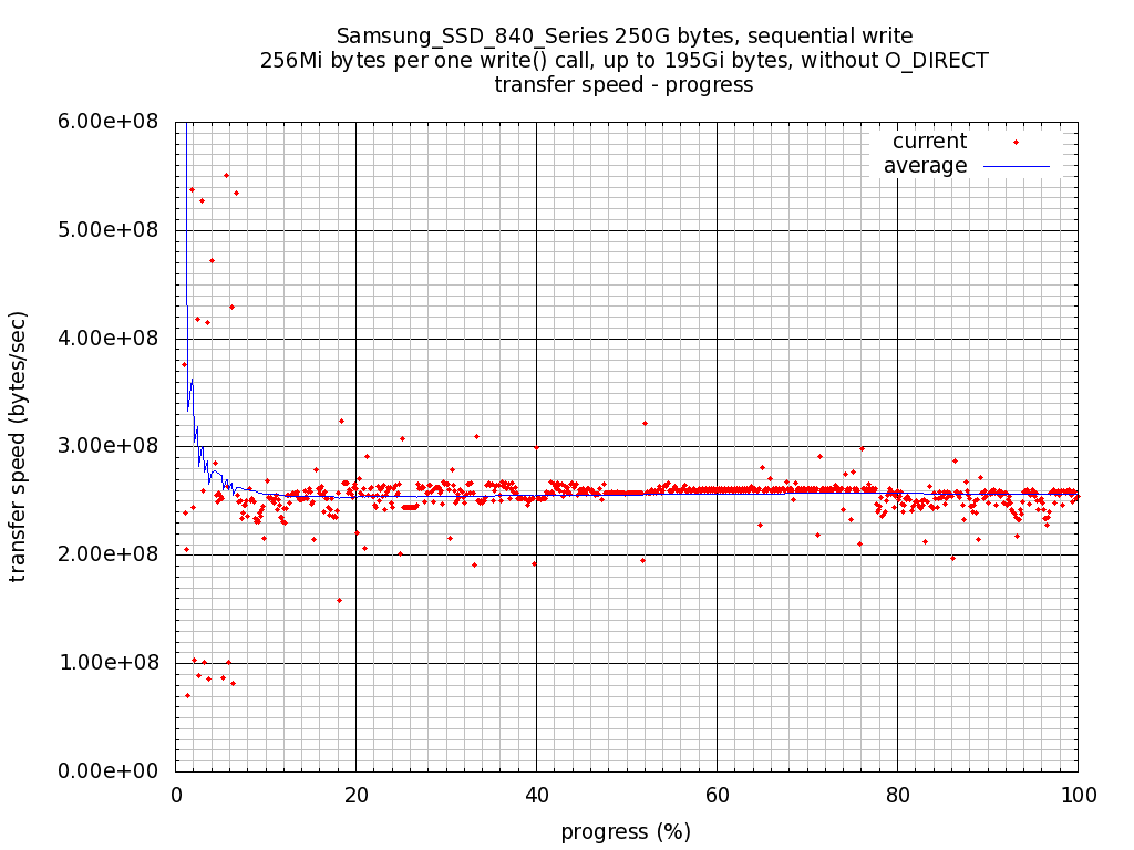 Plot: Sequential write, transfer speed - progress(percent of test file size).