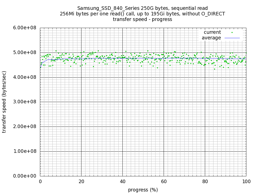 Plot: Sequential read, transfer speed - progress(percent of test file size).