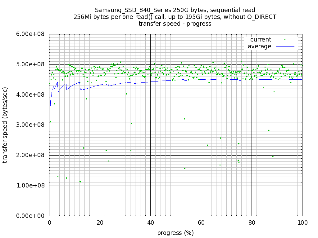 Plot: Sequential read, transfer speed - progress(percent of test file size).