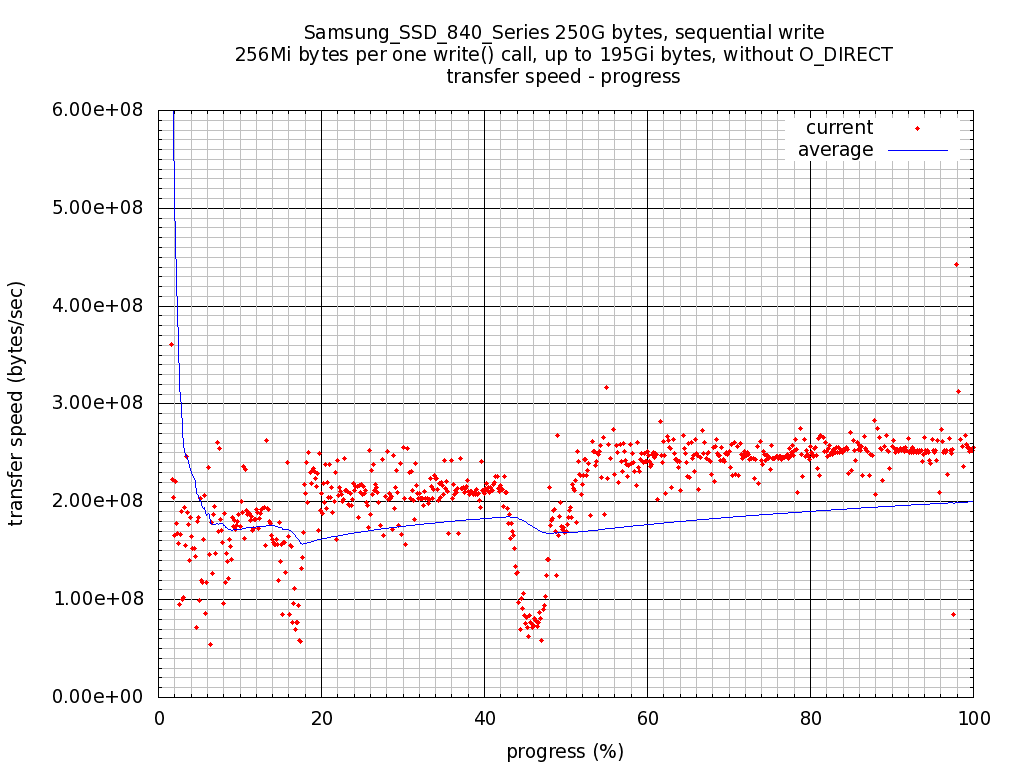 Plot: Sequential write, transfer speed - progress(percent of test file size).
