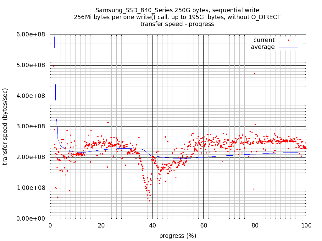 Plot: Sequential write, transfer speed - progress(percent of test file size).