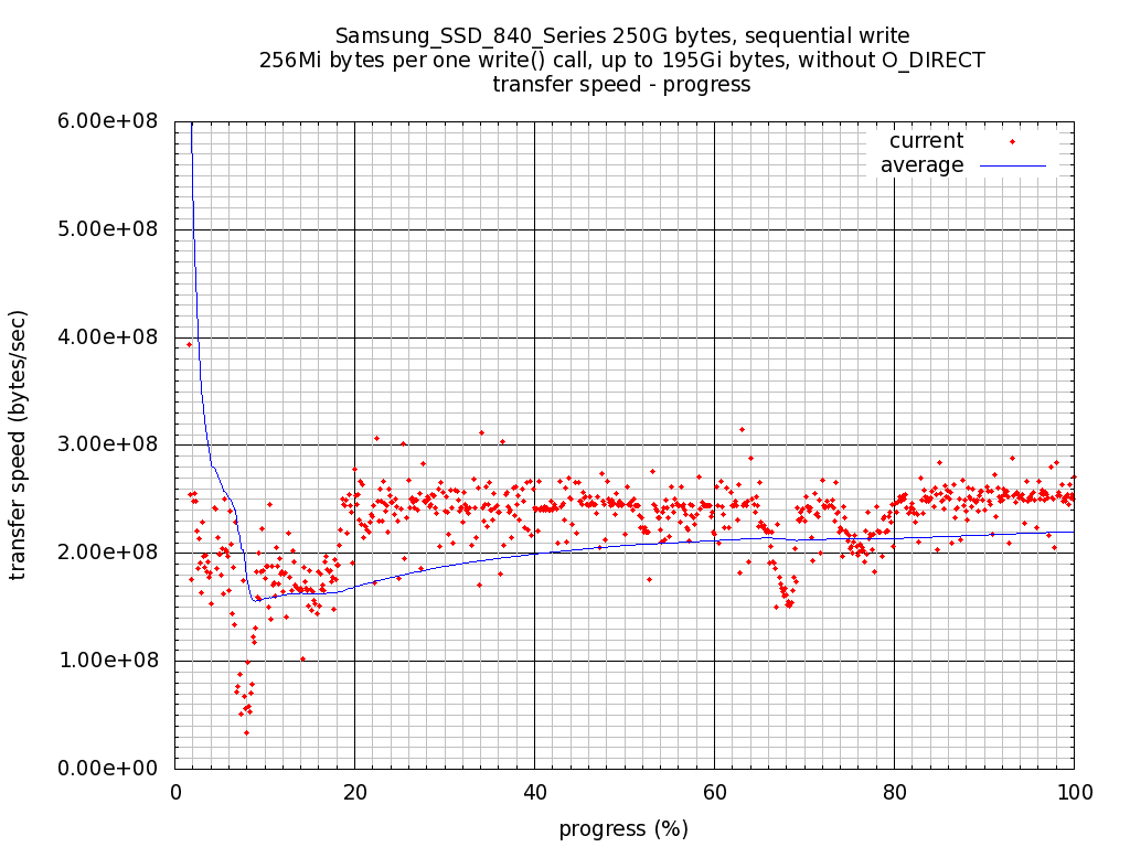 Plot: Sequential write, transfer speed - progress(percent of test file size).