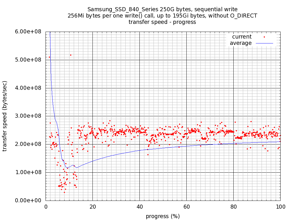 Plot: Sequential write, transfer speed - progress(percent of test file size).