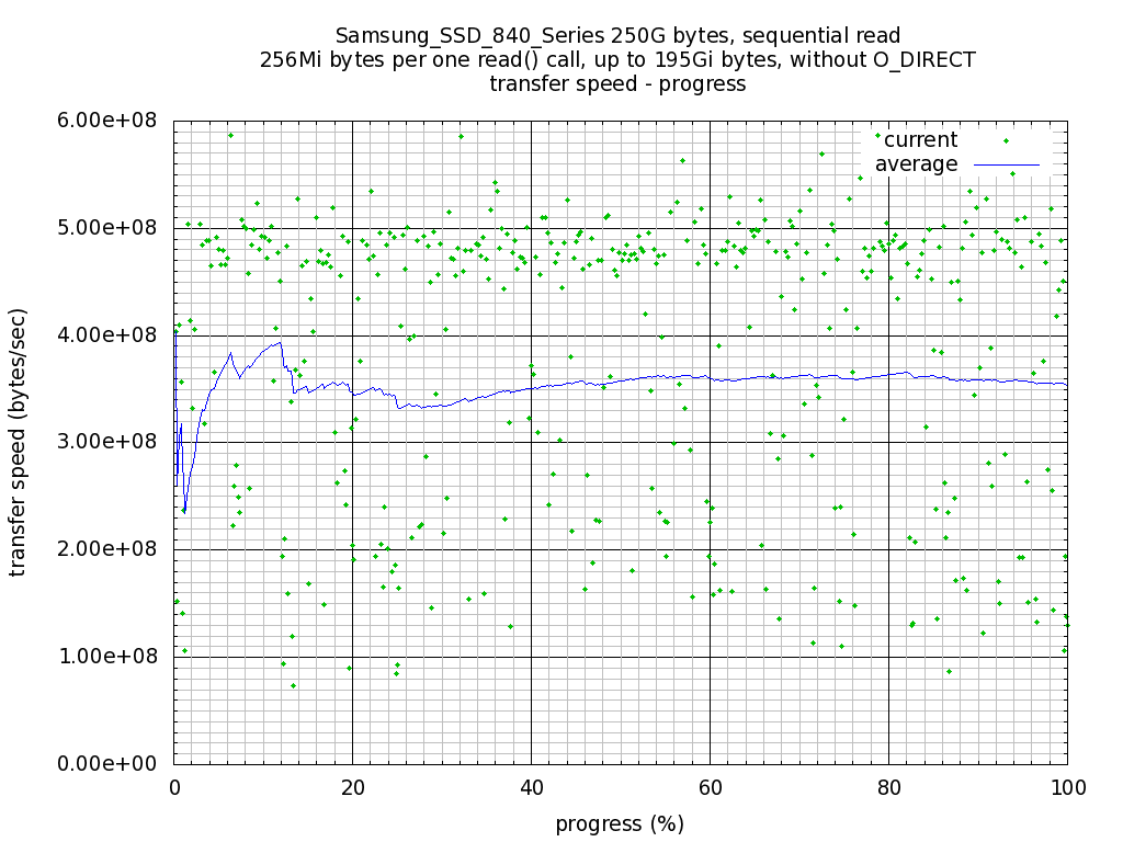 Plot: Sequential read, transfer speed - progress(percent of test file size).