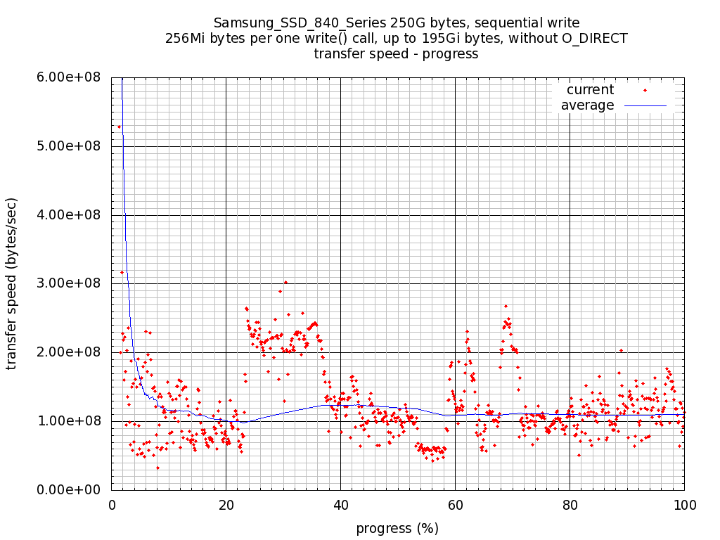 Plot: Sequential write, transfer speed - progress(percent of test file size).