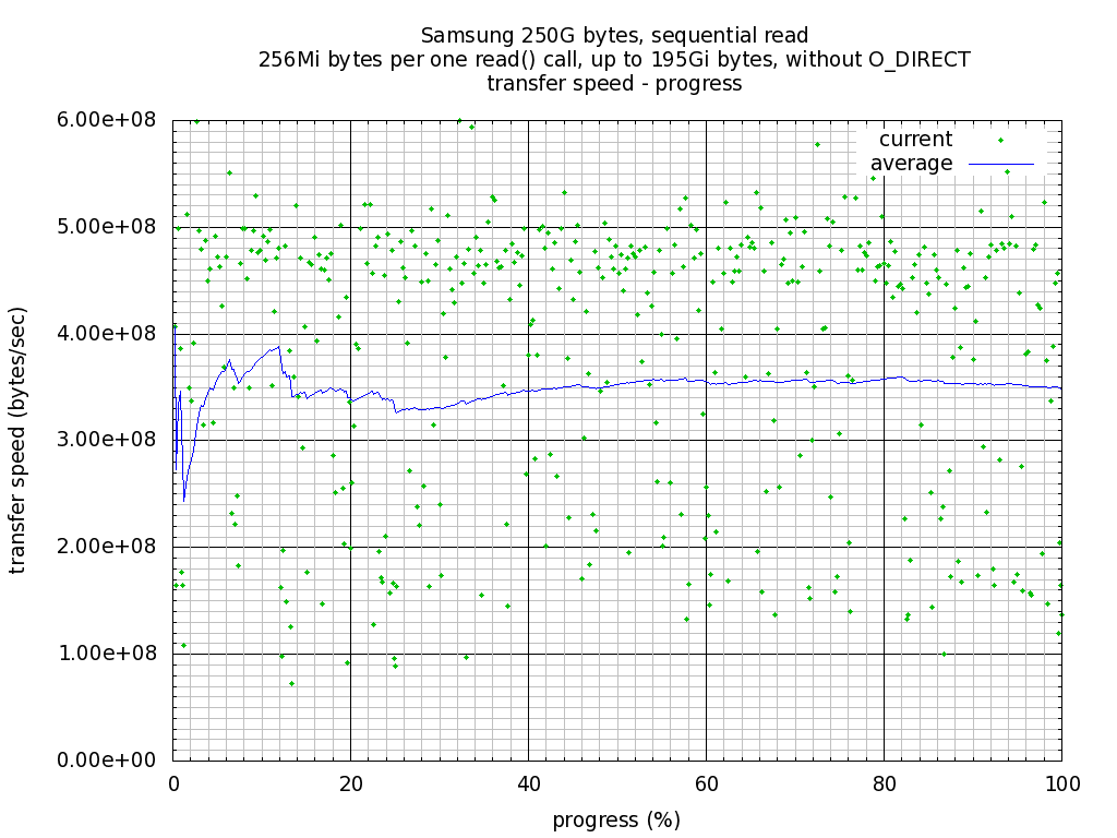 Plot: Sequential read, transfer speed - progress(percent of test file size).