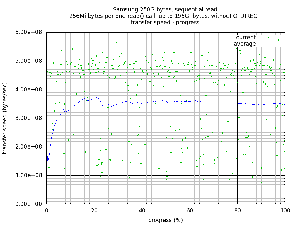Plot: Sequential read, transfer speed - progress(percent of test file size).