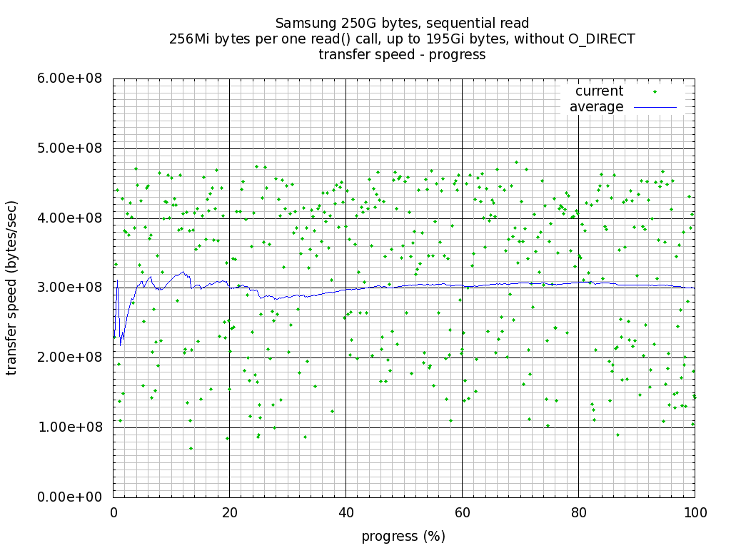 Plot: Sequential read, transfer speed - progress(percent of test file size).