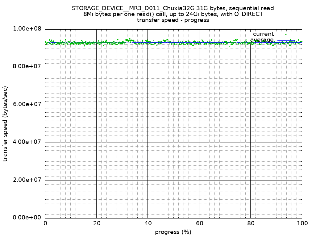 Plot: Sequential read, transfer speed - progress(percent of test file size).