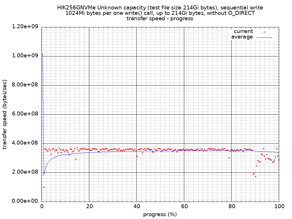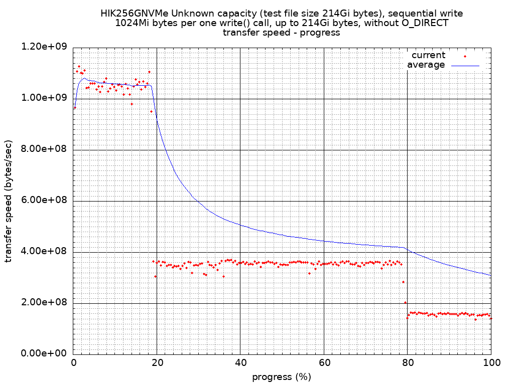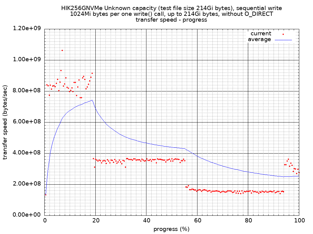 Plot: Sequential write, transfer speed - progress(percent of test file size).