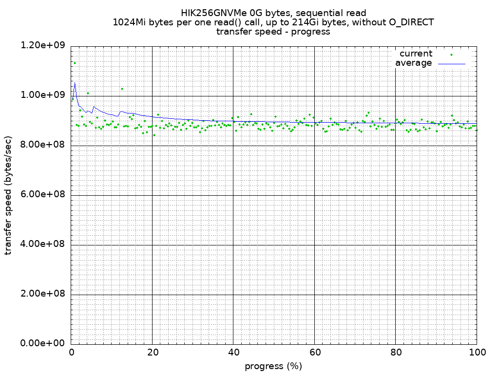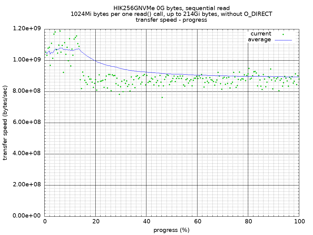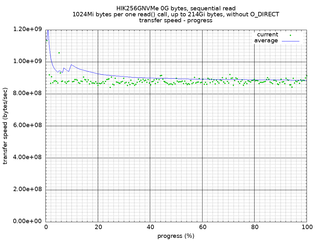 Plot: Sequential read, transfer speed - progress(percent of test file size).