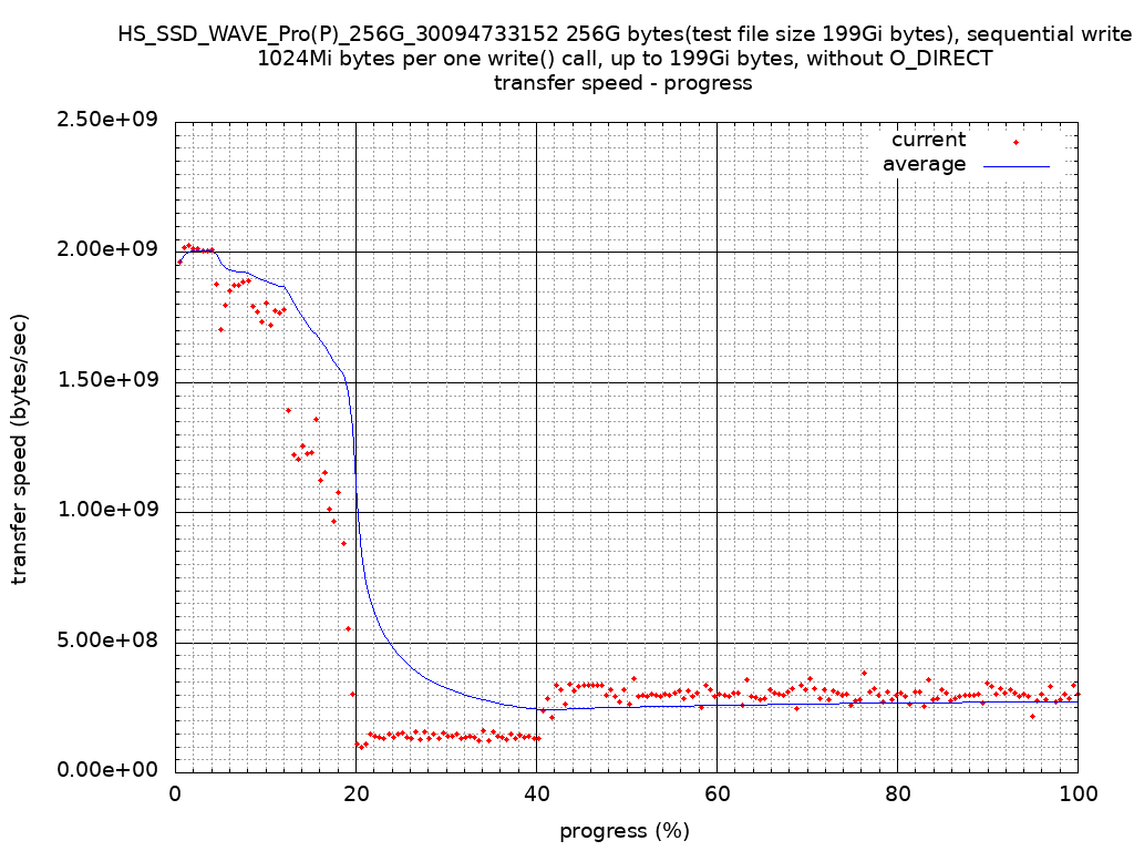 Plot: Sequential write, transfer speed - progress(percent of test file size).