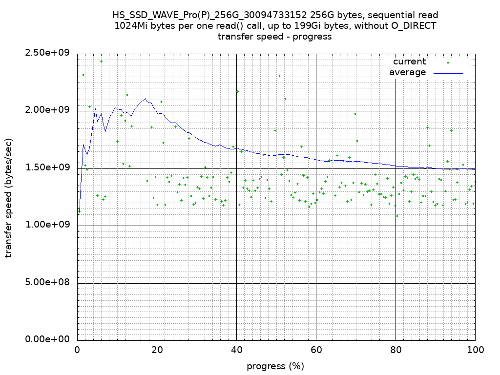 Plot: Sequential read, transfer speed - progress(percent of test file size).