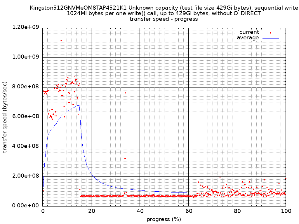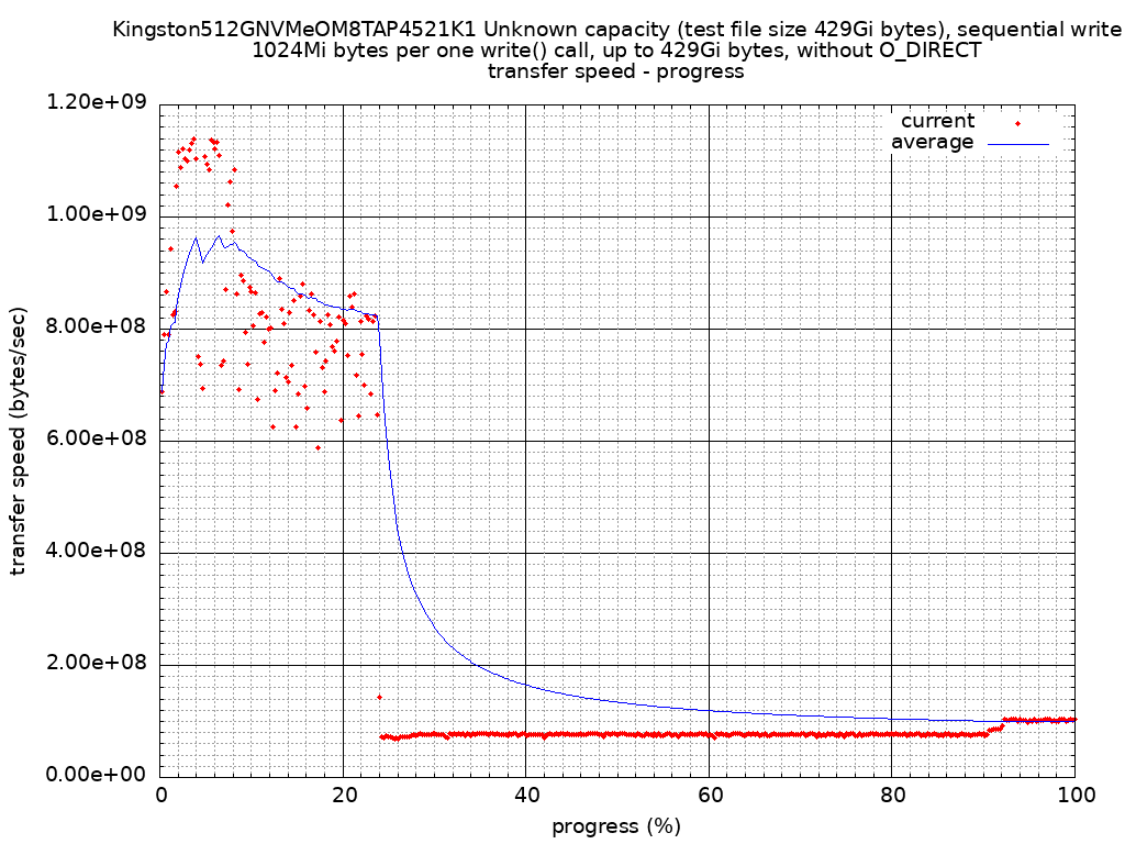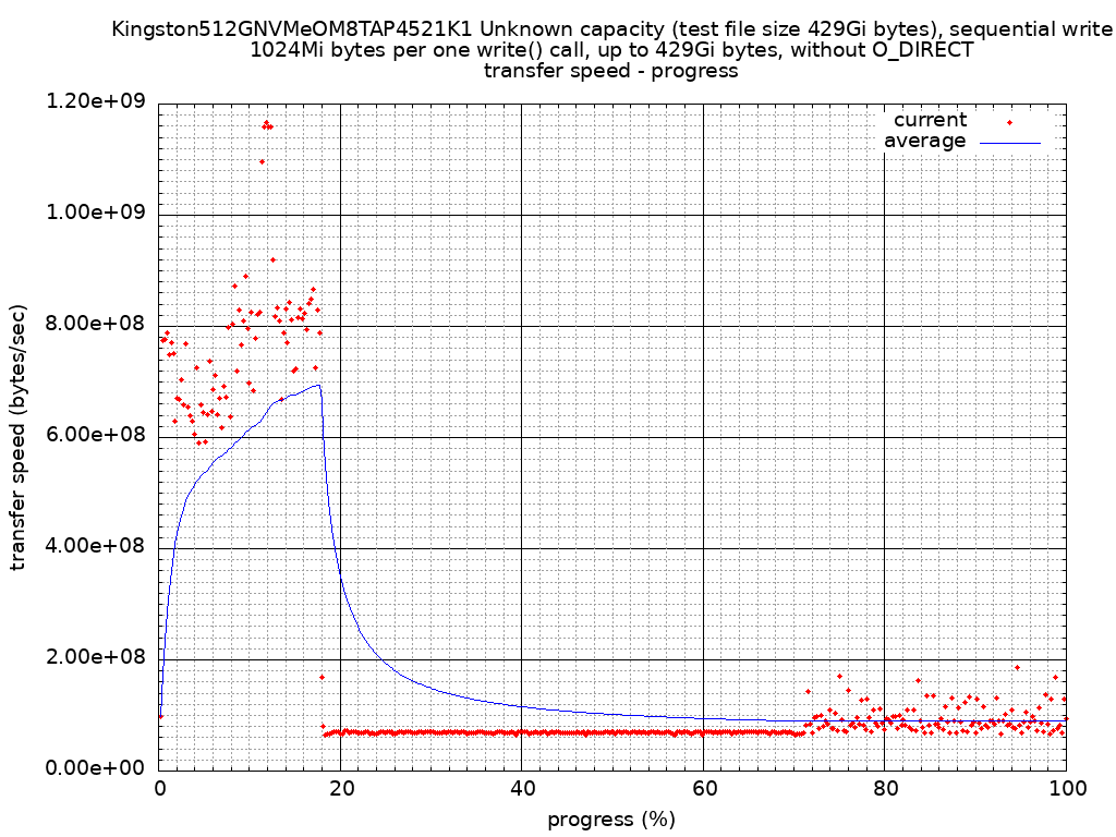 Plot: Sequential write, transfer speed - progress(percent of test file size).