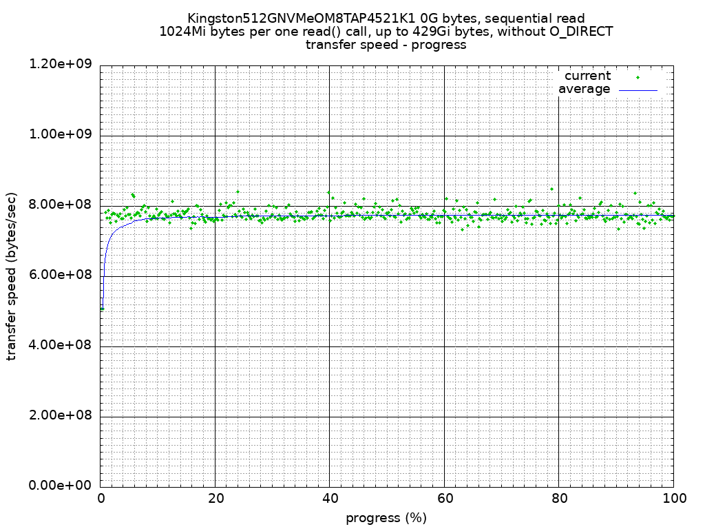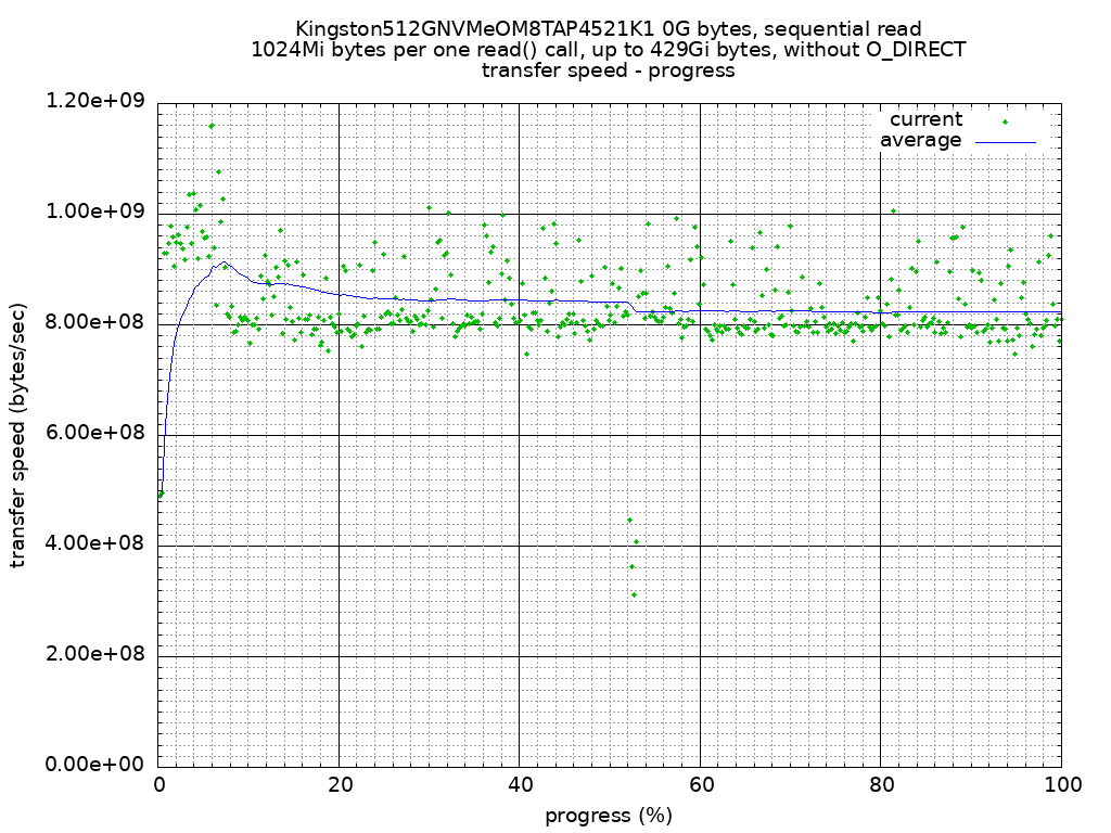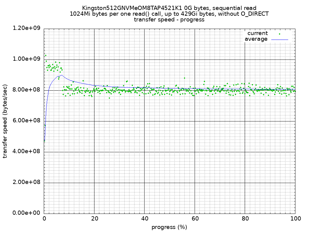 Plot: Sequential read, transfer speed - progress(percent of test file size).