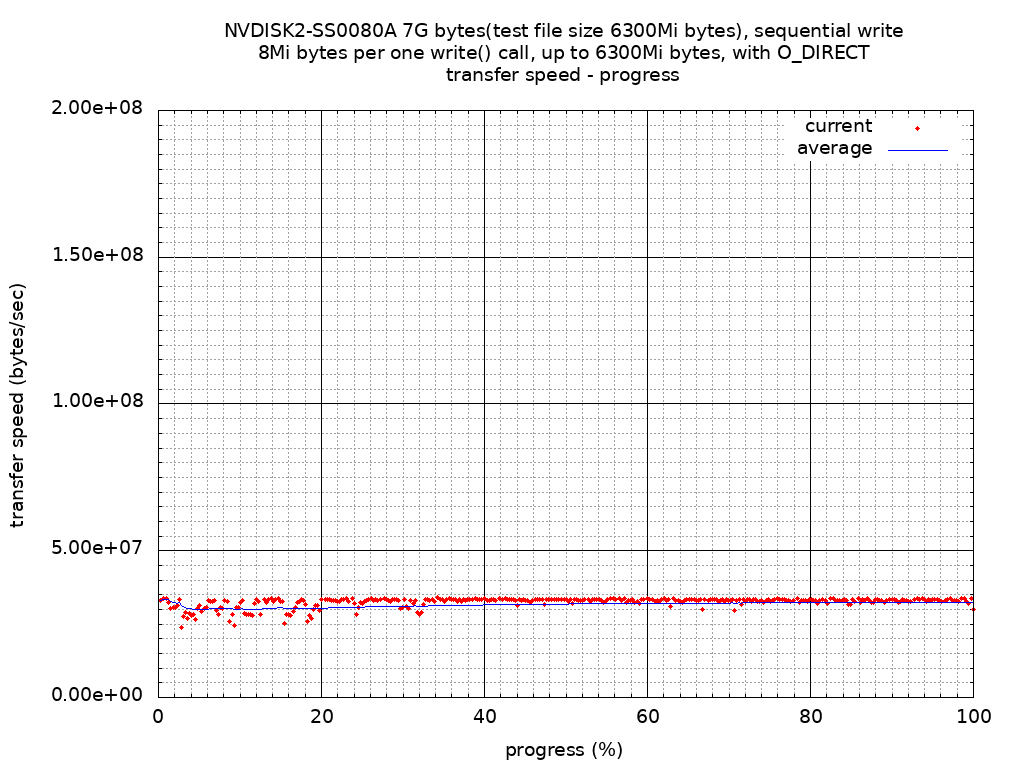 Plot: Sequential write, transfer speed - progress(percent of test file size).
