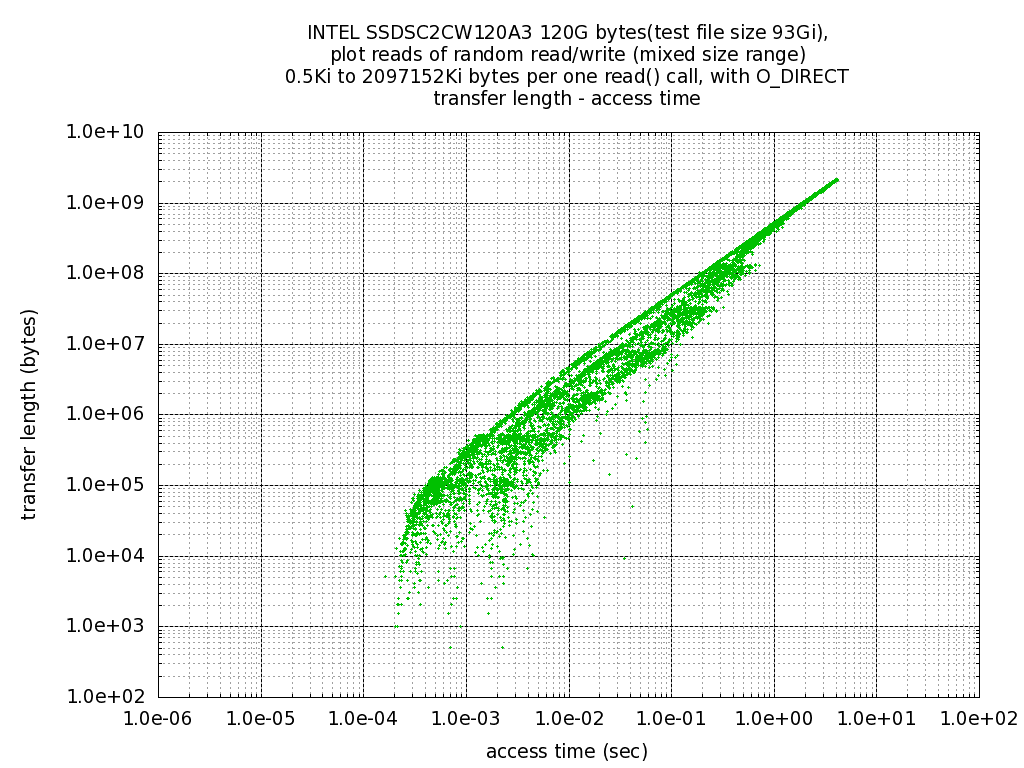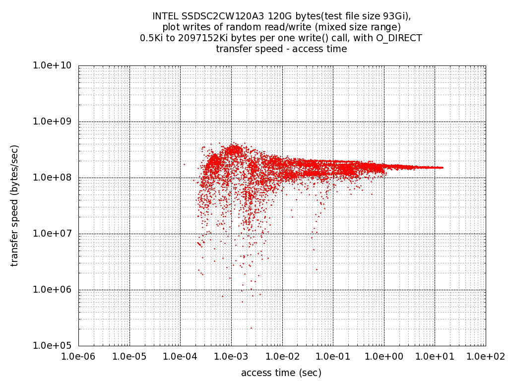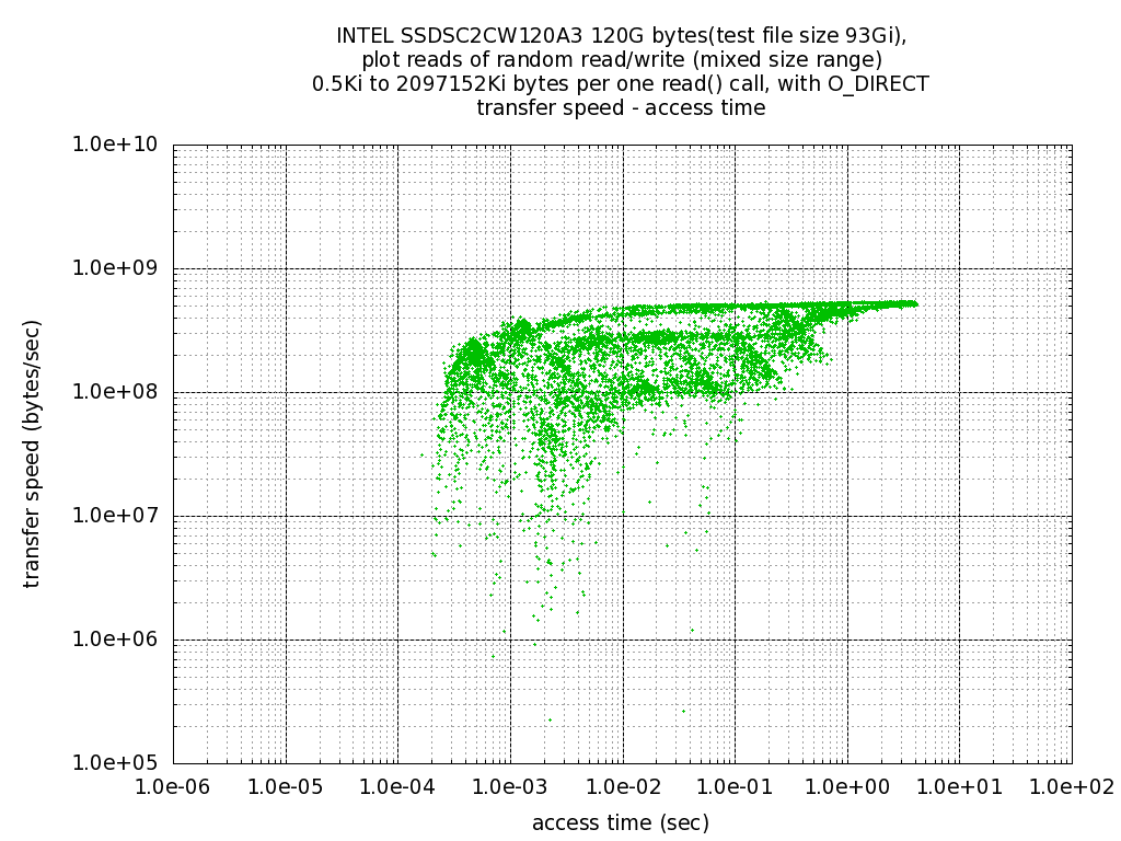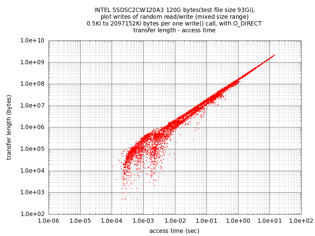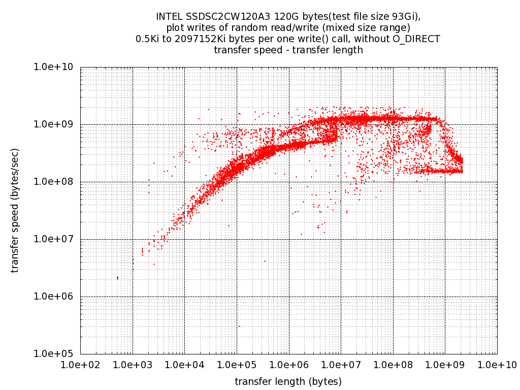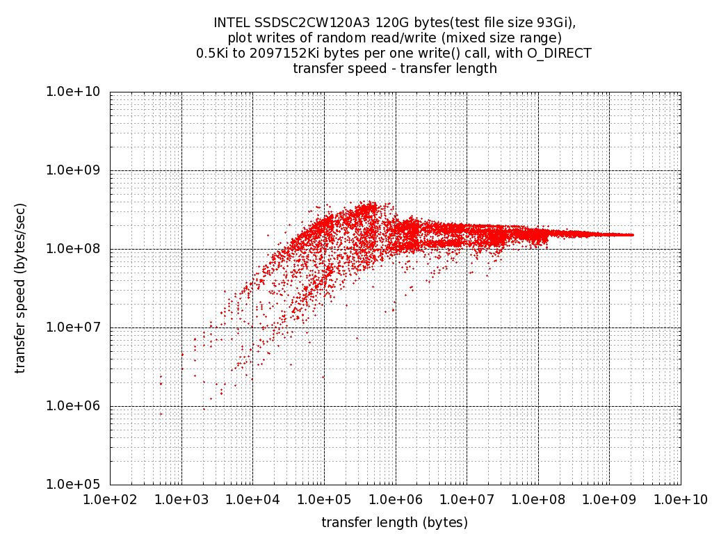 Model: INTEL SSDSC2CW120A3 120G bytes(test file size 93Gi bytes), TestDate: 2012/10/29 00:05:36 JST, LoopCount: Unknown