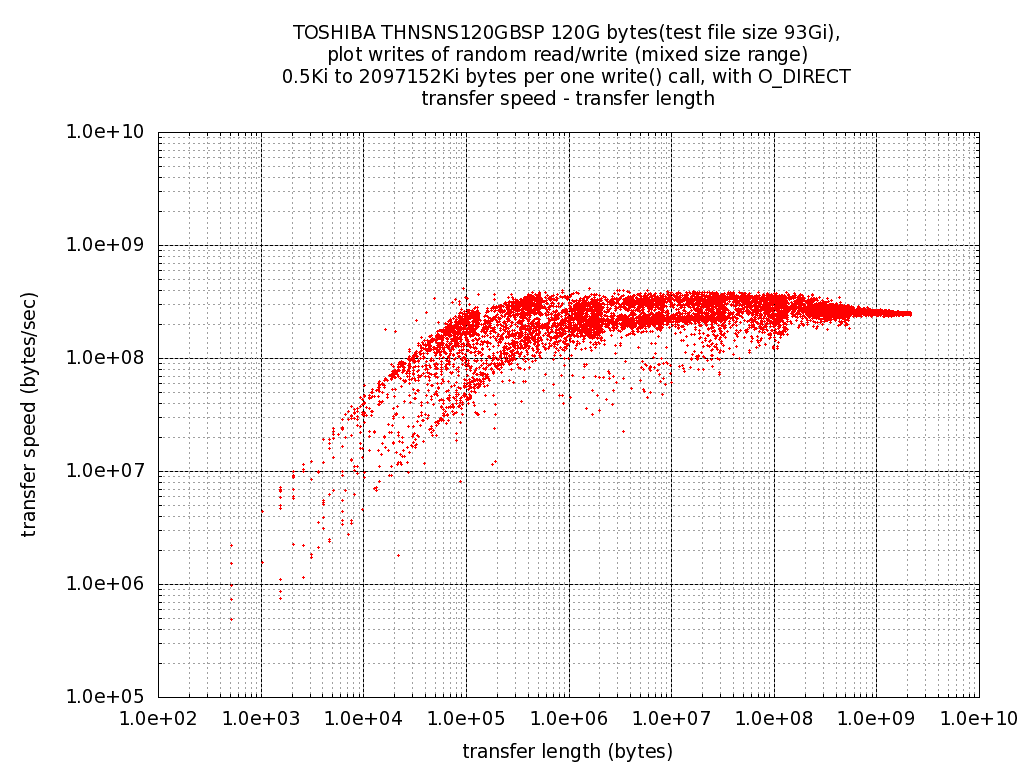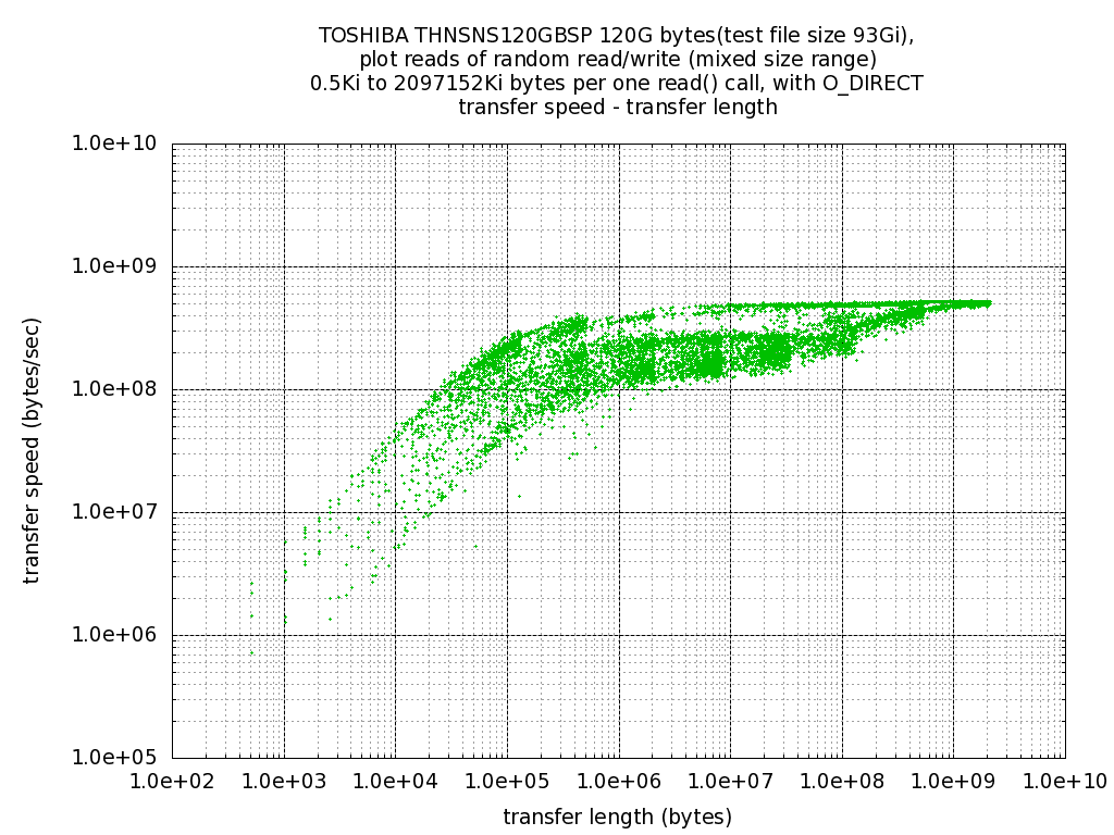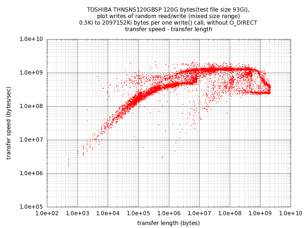 Model: TOSHIBA THNSNS120GBSP 120G bytes(test file size 93Gi bytes), TestDate: 2012/10/30 10:09:07 JST, LoopCount: Unknown