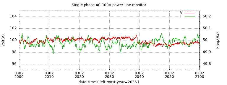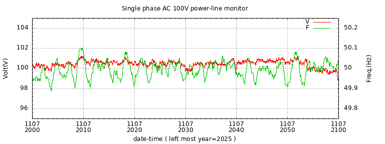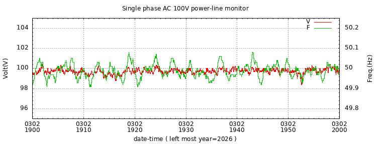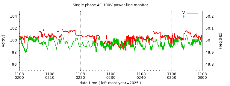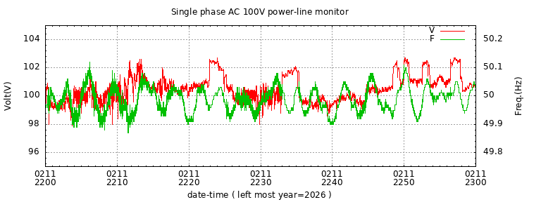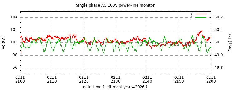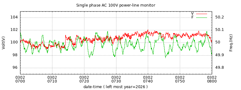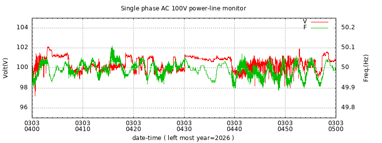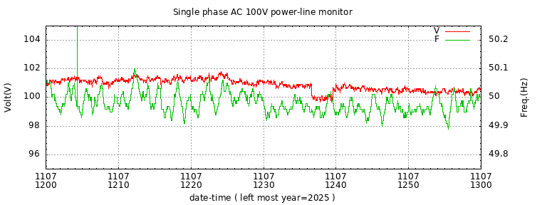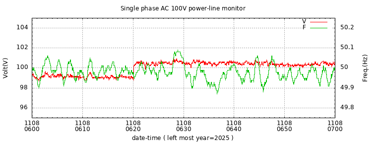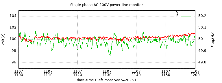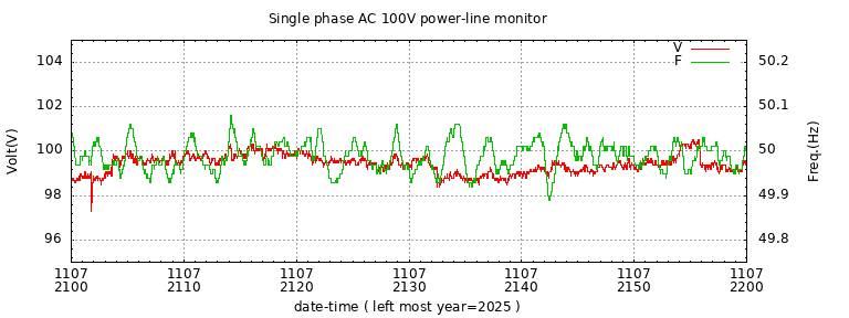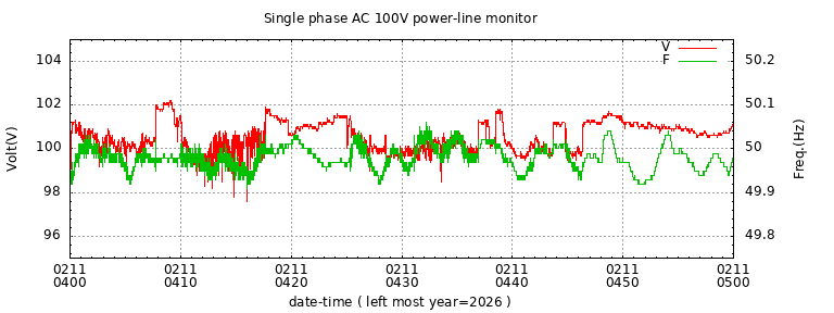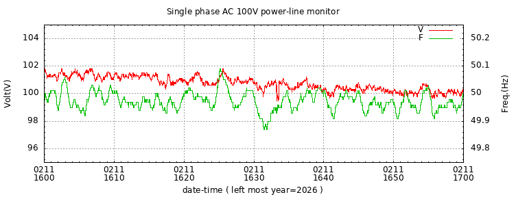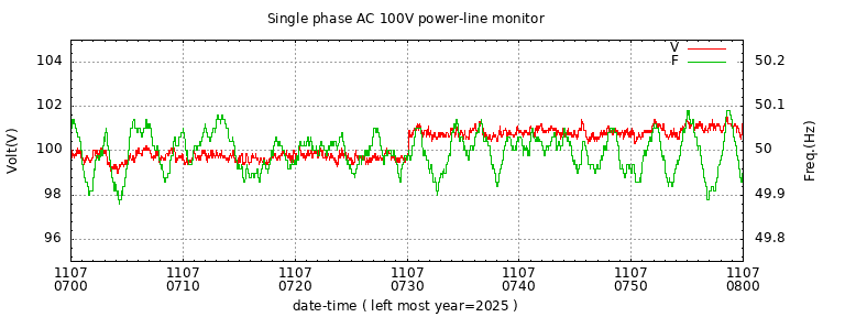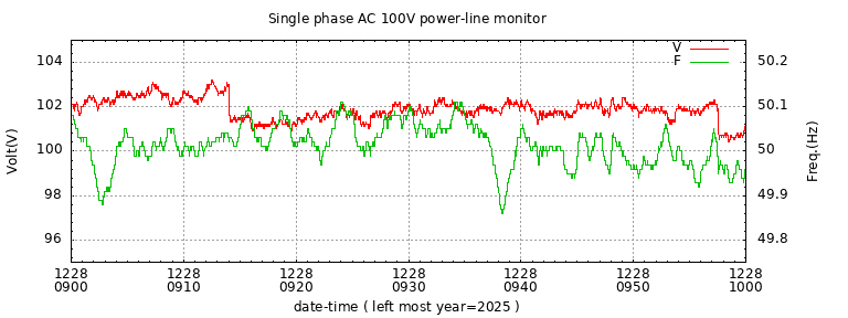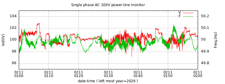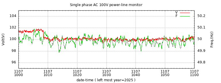 The latest one hour volt and frequency plot (1 hour span).